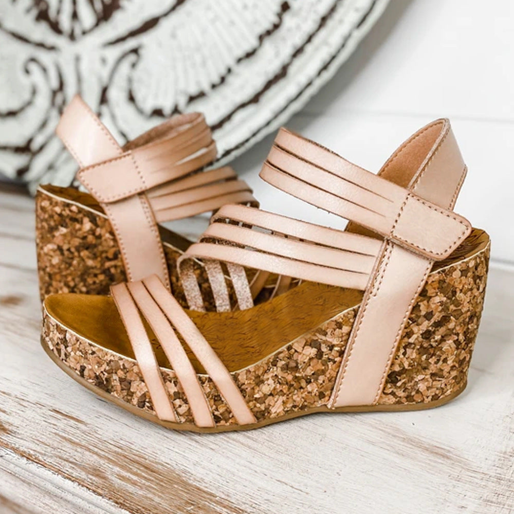 Ces sandales à talon compensé avec bout rond offrent un maintien parfait grâce à leur fermeture scratch.