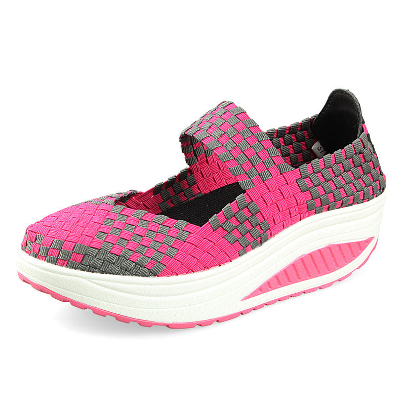Sandales femmes talon moyen, semelle souple, tissage extensible